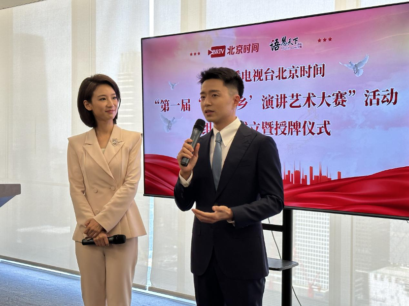 9月13日,“第一届‘魅力家乡’演讲艺术大赛”活动组委会成立暨授牌仪式,在北京广播电视台举行。北京广播电视台融媒体中心常务副主任、北京新媒体集团总编辑、北京时间总编辑宗昊,北京广播电视台主持人李杨薇,北京广播电视台主持人孙扬,北京广播电视台北京时间运营中心主任廖良准,时间课堂总负责人郑屹,以及语慧天下总经理王清云、副总经理于莹等出席了仪式。