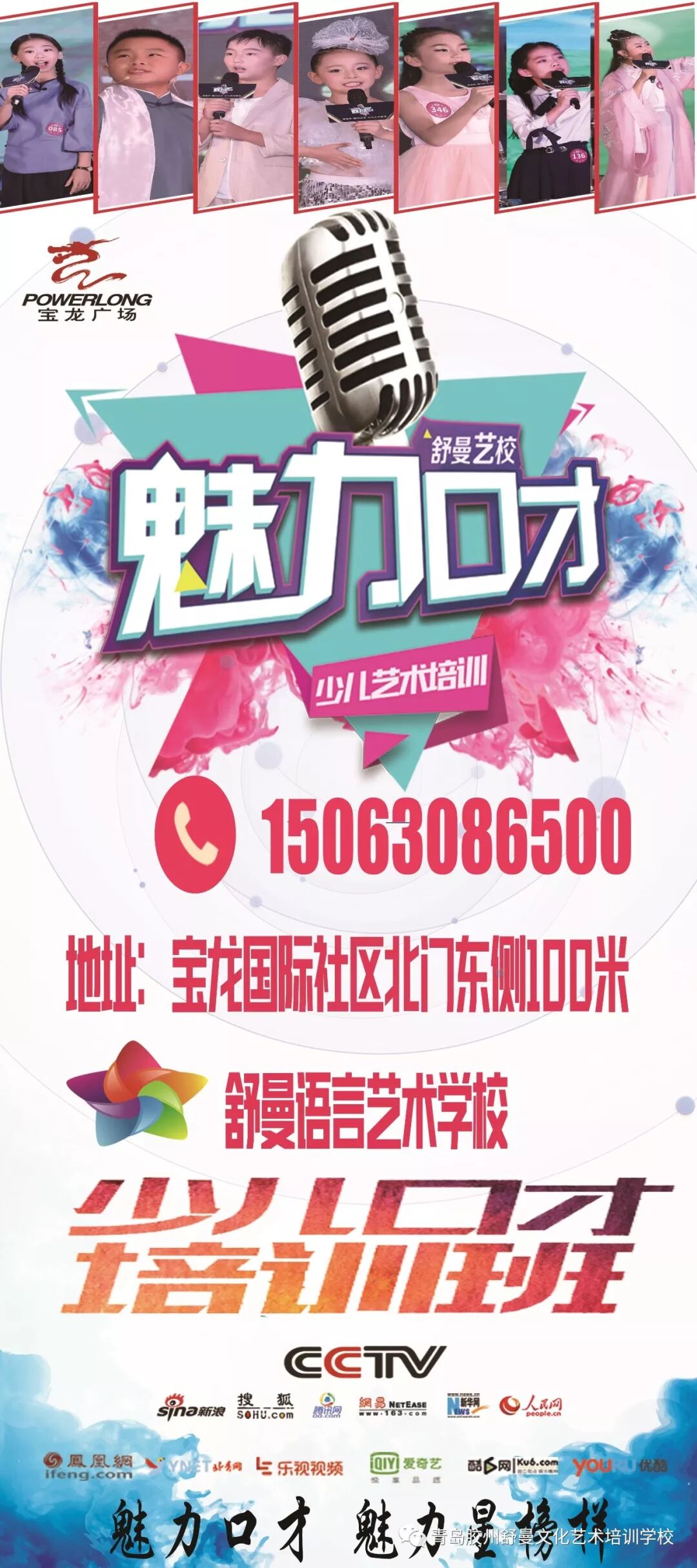 学校地址:胶州市宝龙国际社区北门东侧 舒曼艺校